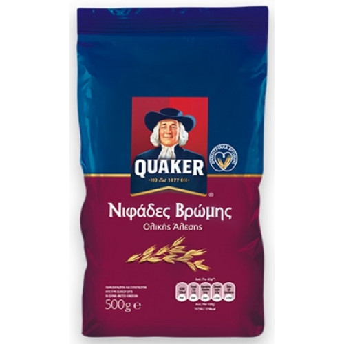 QUAKER νιφάδες βρώμης ολικής 500γρ (ΕΛ) σακούλα